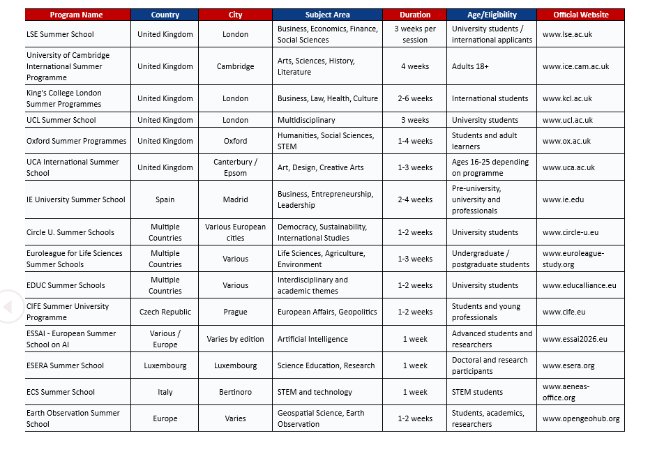 Presented below is a summary of the programs we offer, and there are many additional options to explore!